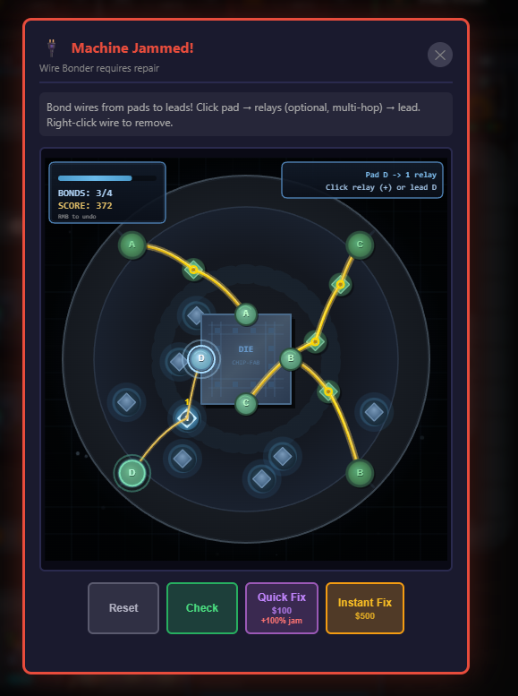 Start small, think big. Place machines, route conveyor belts, and transform raw silicon wafers into valuable microchips. Etch layers, bond wires, program firmware, and package your products for market.